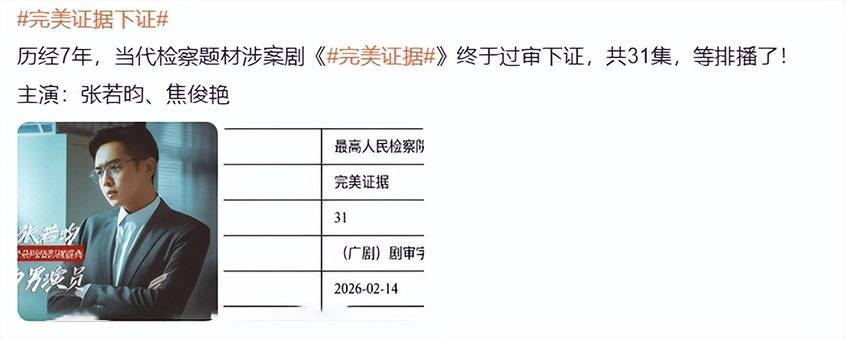 姐妹们,最近知道了《完美证据》定档的消息,我可特别兴奋,从2019年杀青到当下,整整7年,这剧的时长比我谈的恋爱时长还长,张若昀和焦俊艳第二次合作,这谁能不觉得兴奋,不过说真的,积压的剧就好像压在箱子底的限量款包包,到底是越久越有韵味还是越久越过时,这件事情还真挺值得唠唠的。
